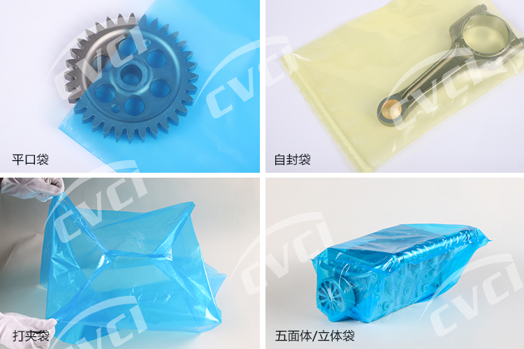 氣相防銹塑料薄膜以聚烯烴類樹(shù)脂為基材,加入揮發(fā)性緩蝕劑(VCI),經(jīng)過(guò)一些列工藝制成。氣相防銹膜在實(shí)際應(yīng)用中主要以袋狀或片狀形式呈現(xiàn)(詳見(jiàn)產(chǎn)品狀態(tài)),包裝保護(hù)客戶的產(chǎn)品,集防銹與包裝功能為一體。我們膜的厚度、顏色、尺寸及形式根據(jù)客戶實(shí)際需求進(jìn)行定制化、個(gè)性化生產(chǎn)。抗靜電氣相防銹膜具有良好抗靜電性,表面電阻率(108~1012)Ω。