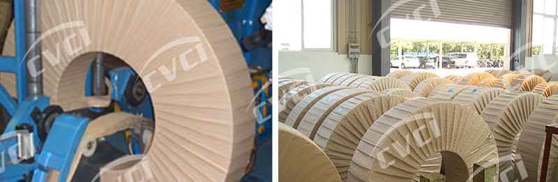 鋼板在剪切配送過程中,一般會根據(jù)客戶要求分切成不同寬度的窄條帶,通過短途運輸至目的客戶。在貯運期間,受環(huán)境影響易發(fā)生銹蝕和機械損傷,故需要防蝕包裝。皺紋夾絲復合紙通過其獨特的基材和良好的阻隔性可以防止鋼板在貯運過程中銹蝕的發(fā)生;同時該產(chǎn)品具有一定的伸長率,尤其適合于窄帶板材的纏繞包裝 。