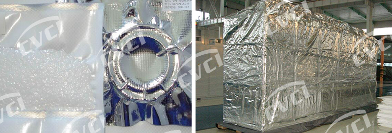 采用該產(chǎn)品包裝金屬制品后,可有效阻隔外界氧氣、水蒸氣、腐蝕性氣體、灰塵、陽光等進(jìn)入包裝空間。在密封條件下可有效防止金屬銹蝕,并減緩橡膠、塑料等非金屬材料的老化變質(zhì),用于各種器材除氧、干燥、真空封存包裝,特別適用于電子、光學(xué)、儀表等精密器材的長期封存;也可用于大型設(shè)備、發(fā)動機(jī)、齒輪箱等大件器材的封套封存。